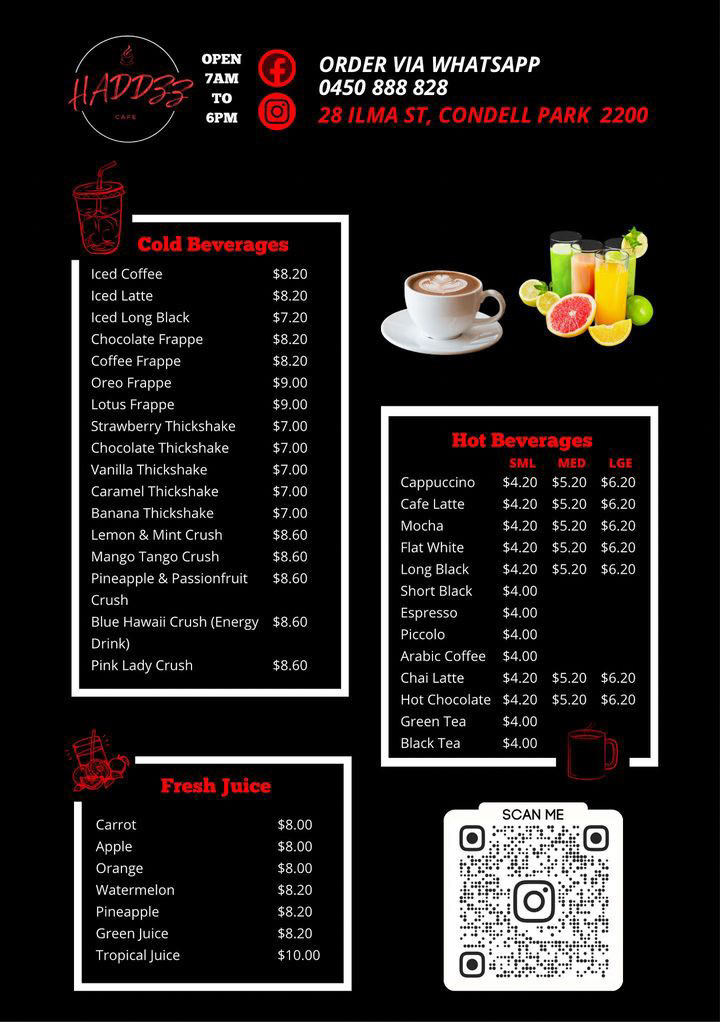 Haddzz cafe Menu